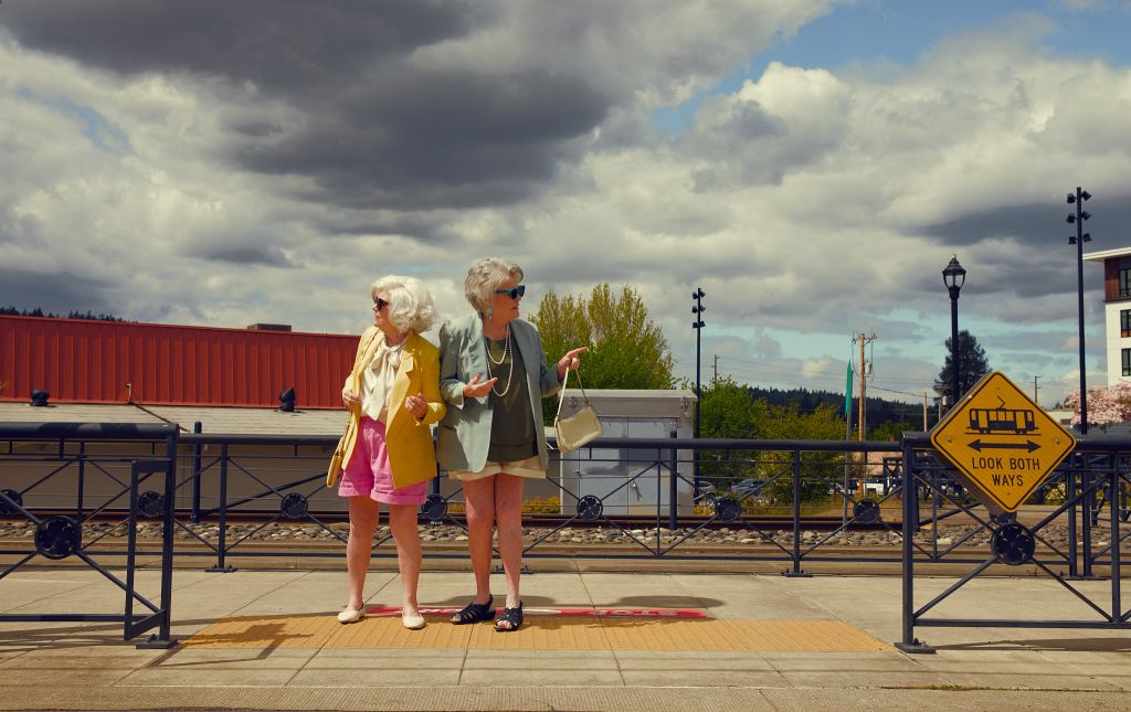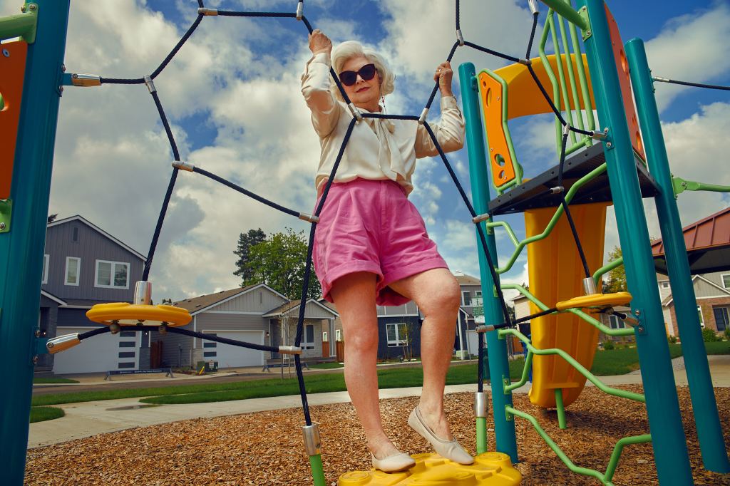 Their quest continued at a playground two bus stops later, where Jill threw caution (and possibly a disc) to the wind and hurled herself down the slide in a blaze of patriotic determination, while Virginia stood nervously at the top watching like a seasoned Crown Charm pageant mom—equal parts pride and panic, silently calculating whether her Medicaid covers acts of God or ill-advised playground stunts.
