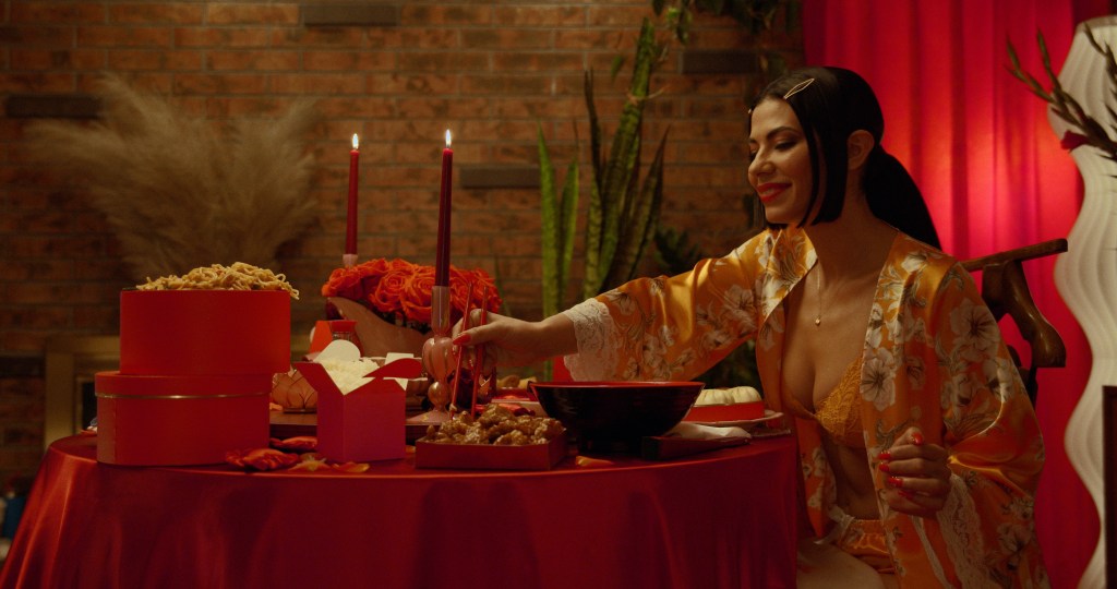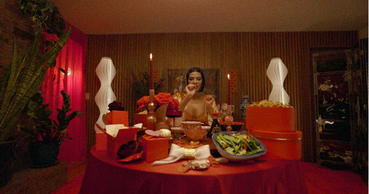 As the project evolved, so did the questions around it. Early styling and prop conversations pushed the concept beyond a straightforward self-love vignette into more complicated territory. The visual language — silk robes, red lacquer, takeout iconography, glossy food moments — began to surface a broader dialogue about women, sexuality, and the long history of cultural flattening that often accompanies both. What does it mean to borrow from another culture’s visual cues? When does appreciation blur into appropriation? And can we acknowledge that tension while still making something visually seductive and intentionally imperfect?